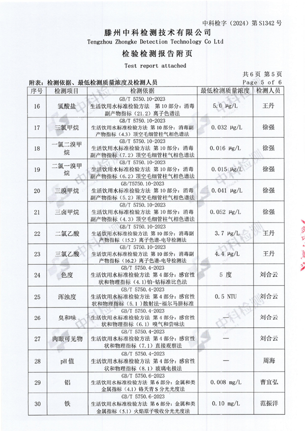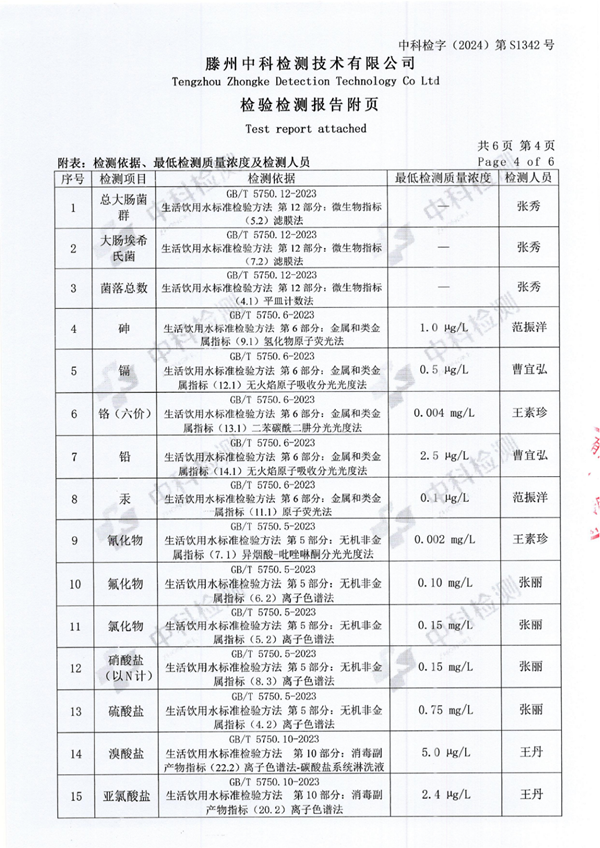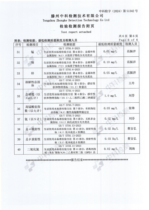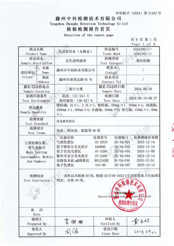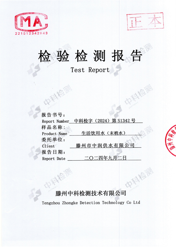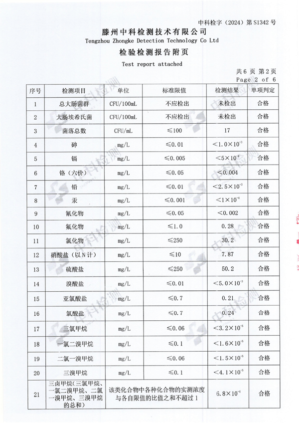 2024年8月份生活飲用水水質(zhì)報告(末梢水)