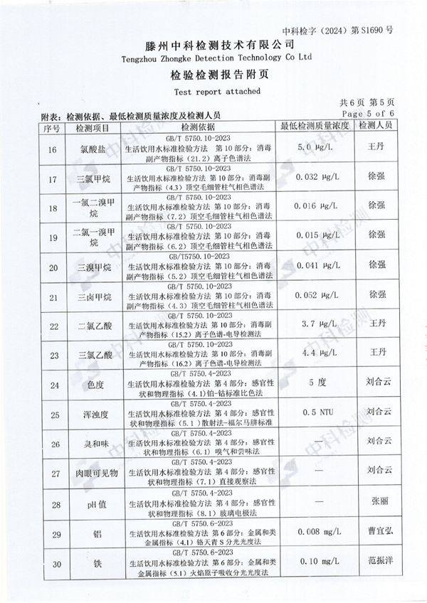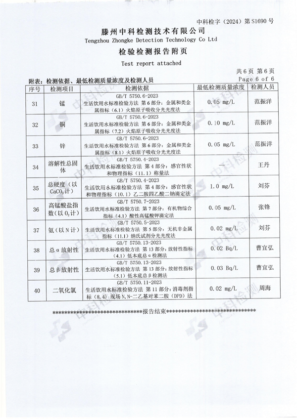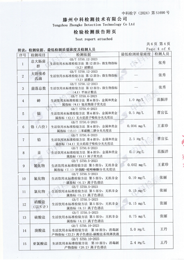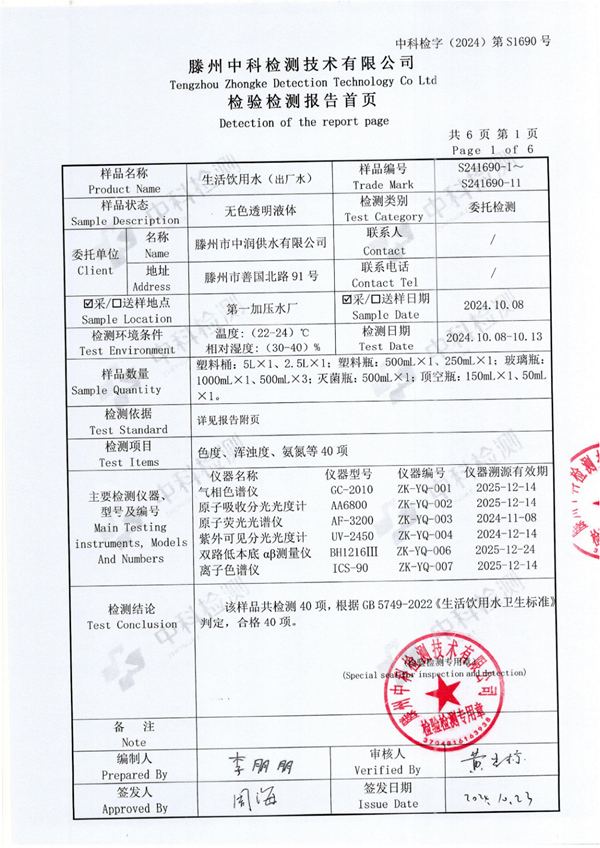 2024年10月份生活飲用水水質(zhì)報告(出廠水)