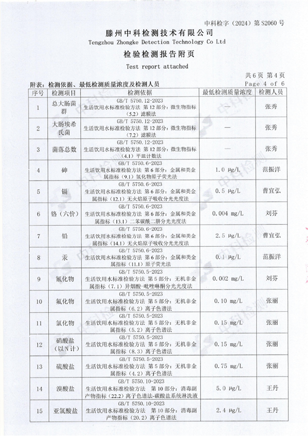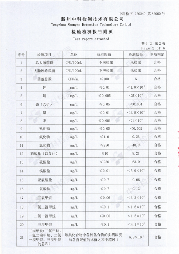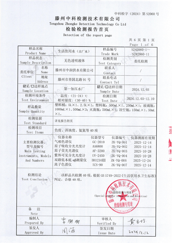 2024年12月份生活飲用水水質(zhì)報告(出廠水)
