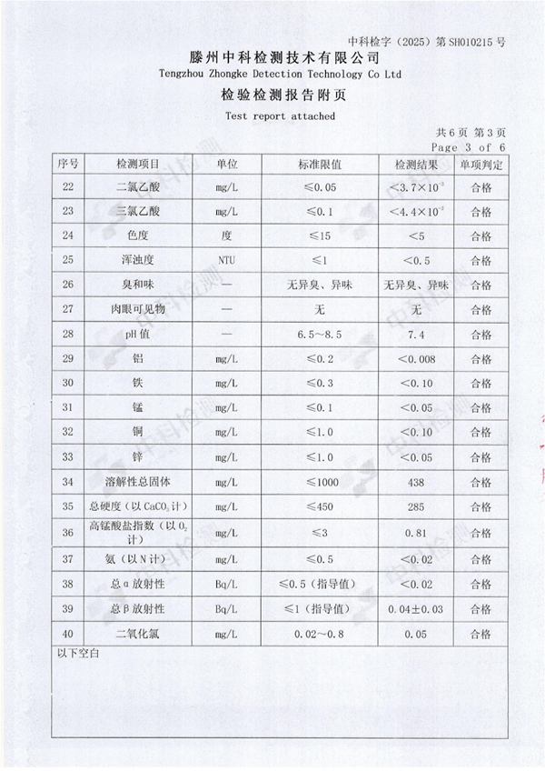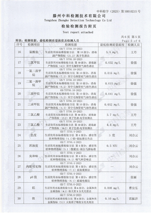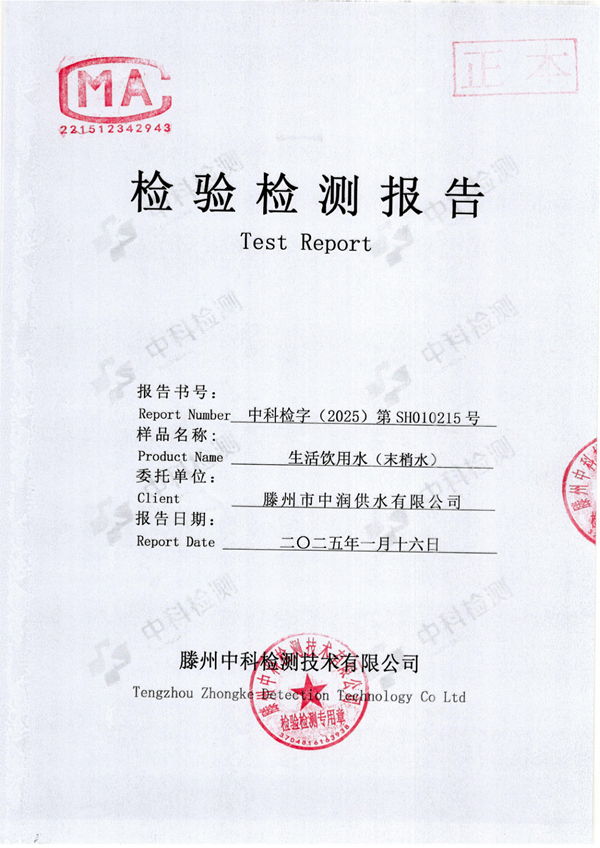 2025年1月份生活飲用水水質(zhì)報(bào)告(末梢水)