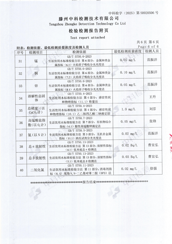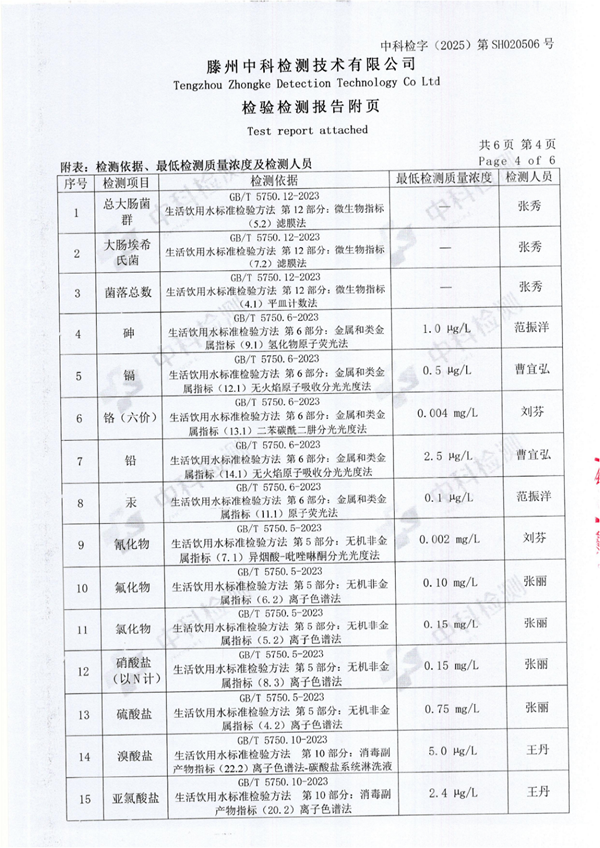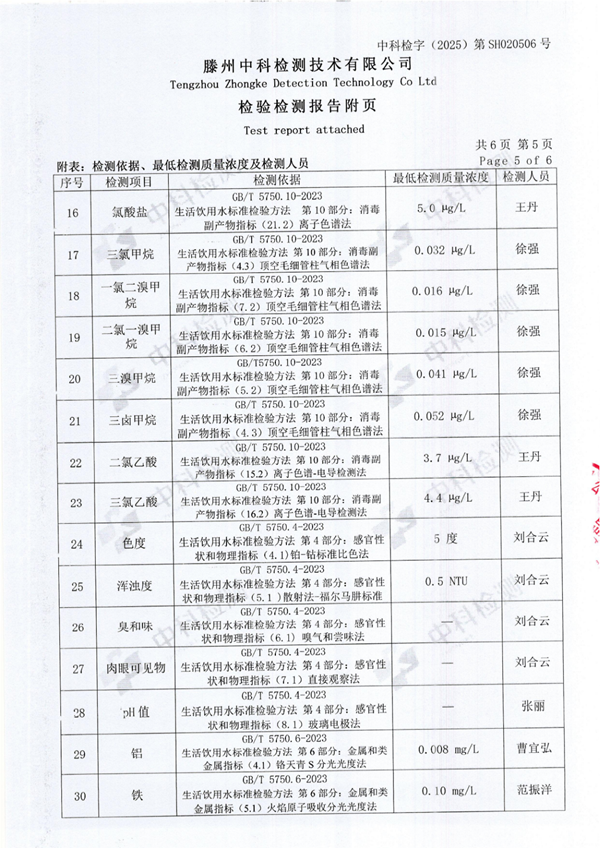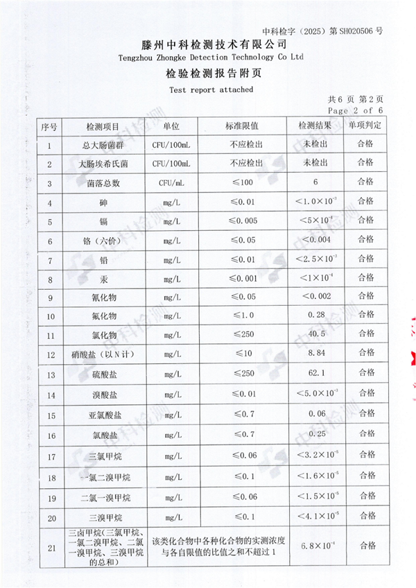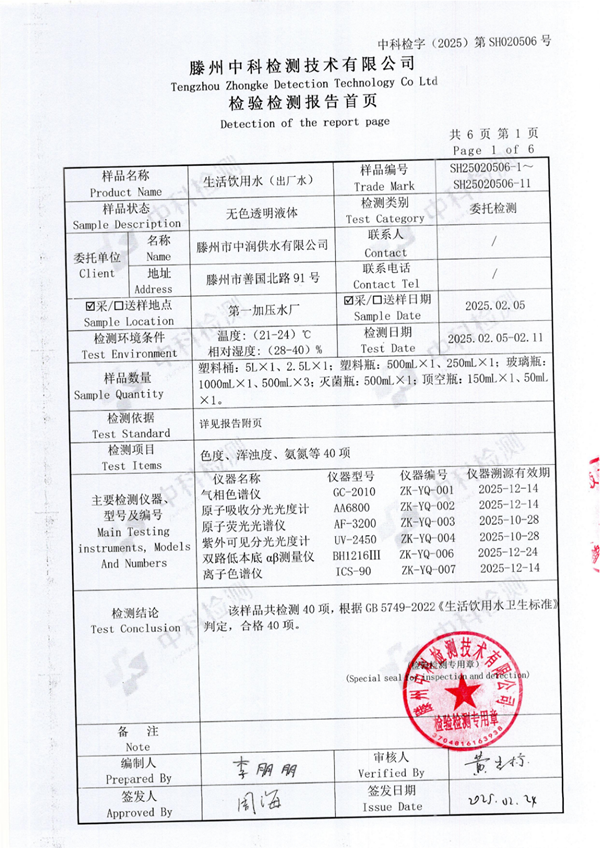 2025年2月份生活飲用水水質(zhì)報(bào)告(出廠水)