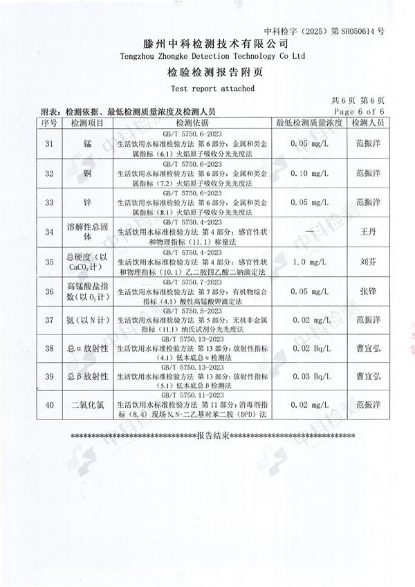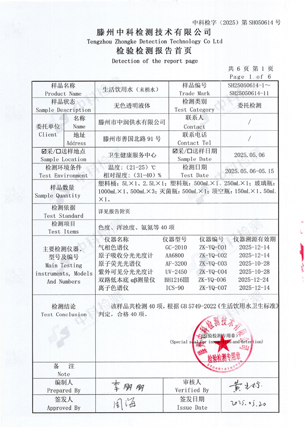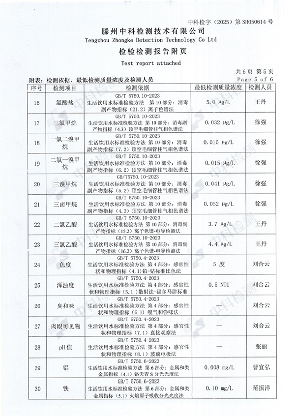 2025年5月份生活飲用水水質(zhì)報(bào)告(末梢水)