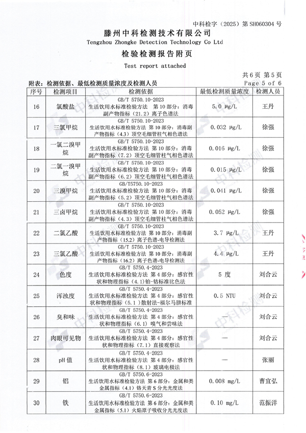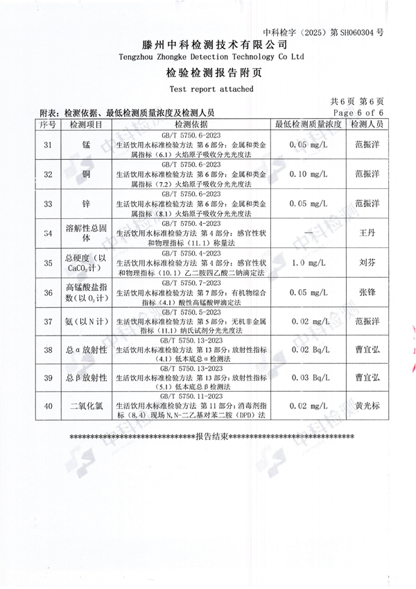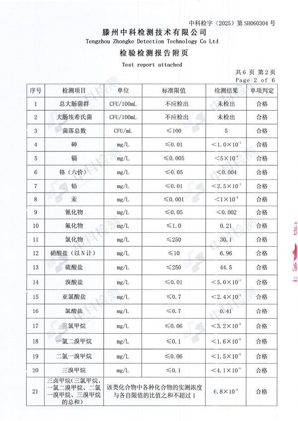 2025年6月份生活飲用水水質(zhì)報告(出廠水)