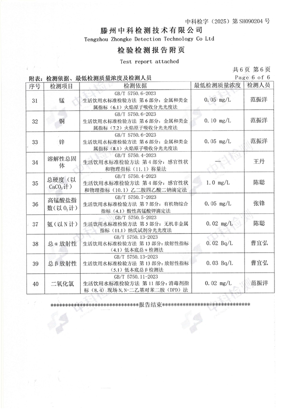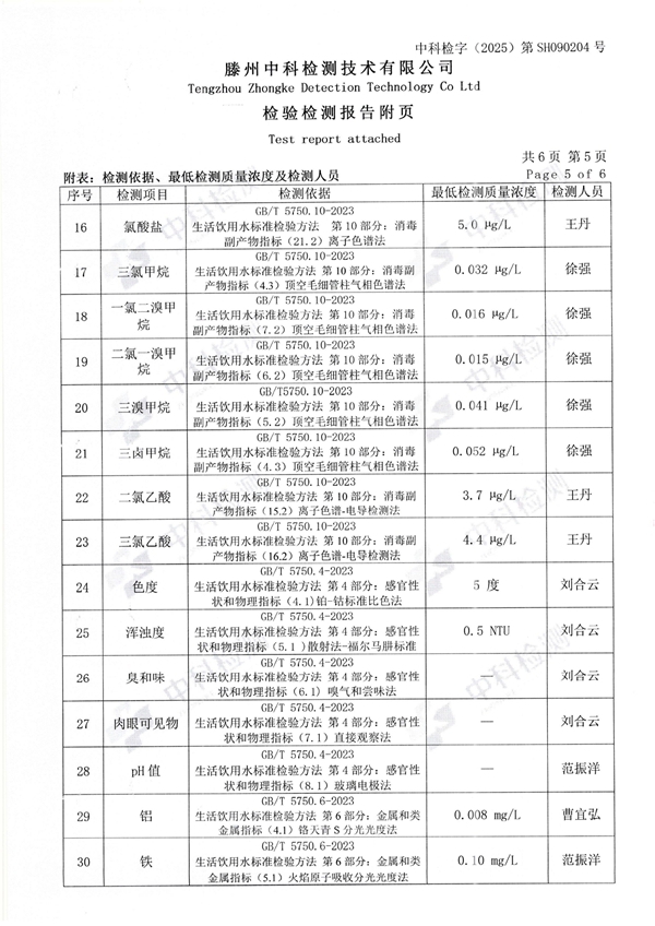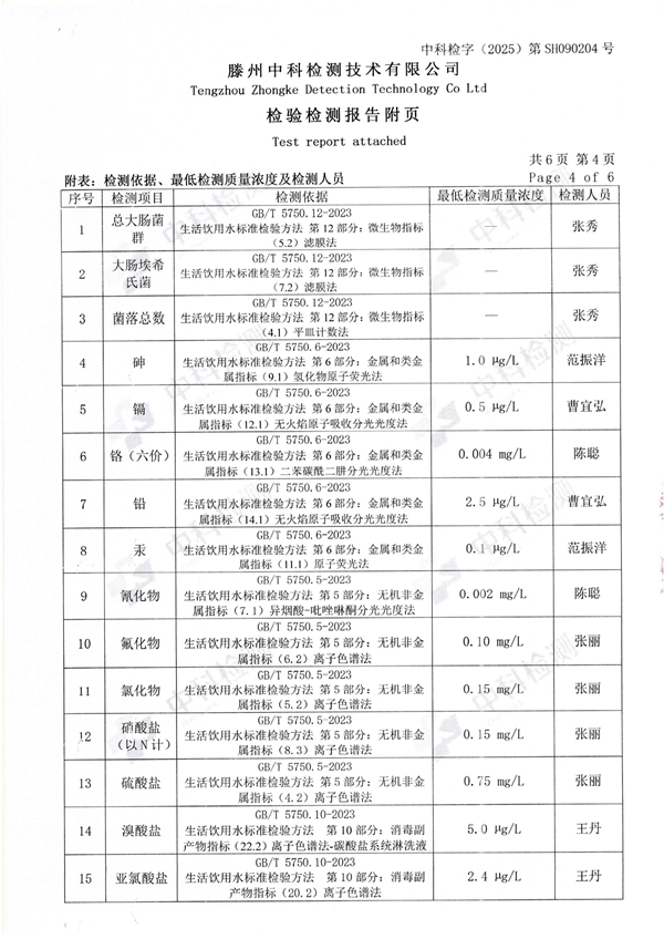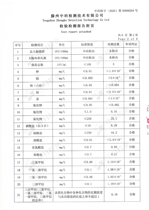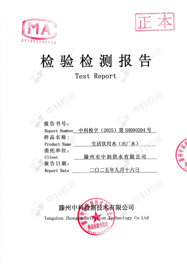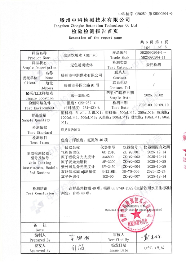 2025年9月份生活飲用水水質(zhì)報(bào)告(出廠水)
